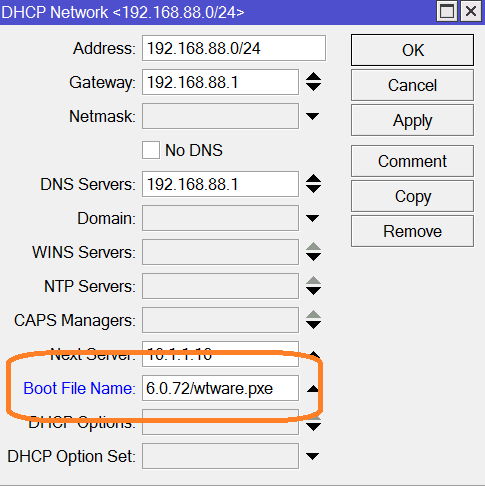 Good news: WTware DHCP will do everything for you. Network boot should work automagically, if you installed WTware DHCP. For more details about WTware DHCP configuration read this manual.