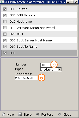 Then press "New" button (4) and add 001 parameter, terminal subnet mask (5, 6).