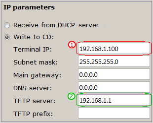 Specify TFTP-server address in "TFTP server" field