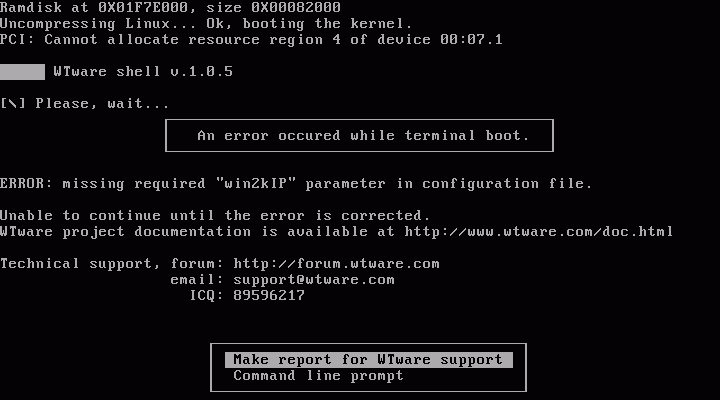 wtshell.nbi). Look at the next article.For ISC dhcpd unix-server add these magic words in the configuration file dhcpd.conf: